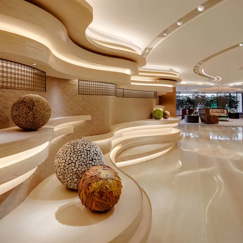 The ceiling boasts elegant curves and abstract skylight openings, allowing filtered natural light to pour in and shift throughout the day, creating ever-changing shadows and moods. This dynamic interaction between light and form ensures that no two visits are ever exactly the same. The structure itself becomes part of the storytelling process—architecture as canvas.