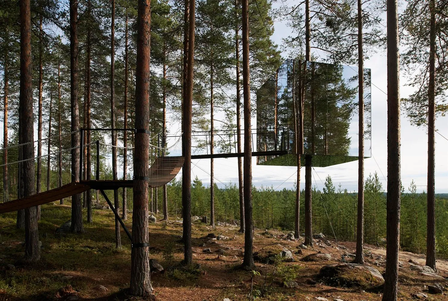 Nestled in the serene forests of Harads, northern Sweden, the Treehotel offers guests an unparalleled experience of living amidst the treetops. This collection of unique treehouses, each designed by different Scandinavian architects, seamlessly blends innovative design with environmental consciousness.