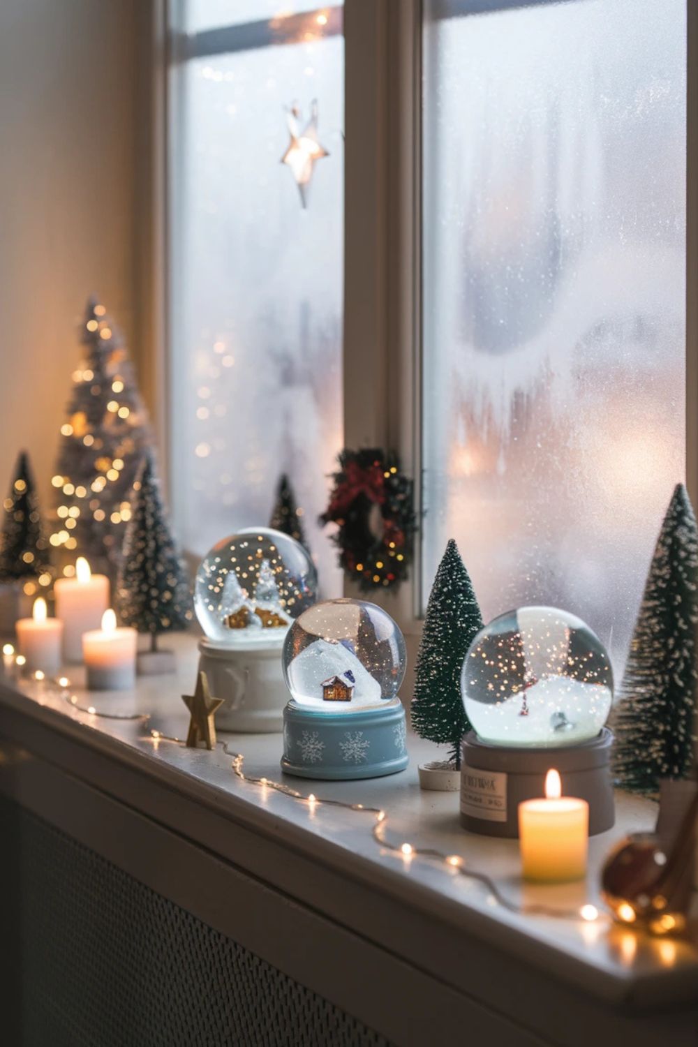 Windowsills are an often-overlooked spot perfect for festive decor. Place a few mini Christmas trees, lanterns, or candles along the sill. Add snow globes, pinecones, or ornaments for an extra seasonal touch. For a magical vibe, line the sill with battery-operated candles or fairy lights. This will make your windows glow beautifully from both inside and outside.