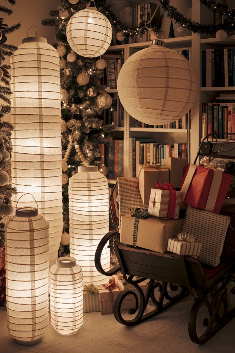 Don’t let empty corners in your rooms go unnoticed. Fill them with tall lanterns, oversized ornaments, or clusters of mini trees. You can even use a vintage sled propped up with wrapped presents for a whimsical touch. This adds balance and ensures that every part of your room contributes to the festive atmosphere.