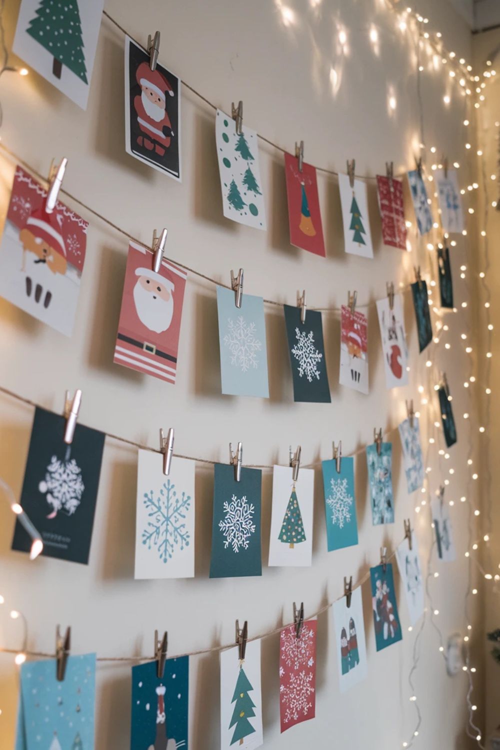 Show off your holiday cards in style! String a piece of twine or ribbon along a wall or across the fireplace mantel. Use small clothespins or clips to attach the cards, creating a beautiful and personal display. Add fairy lights or garland along the string for a festive touch. This is not only decorative but also lets you enjoy the warm wishes from friends and family all season long.