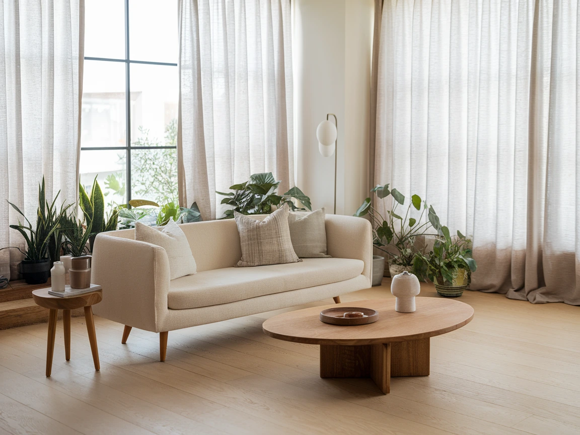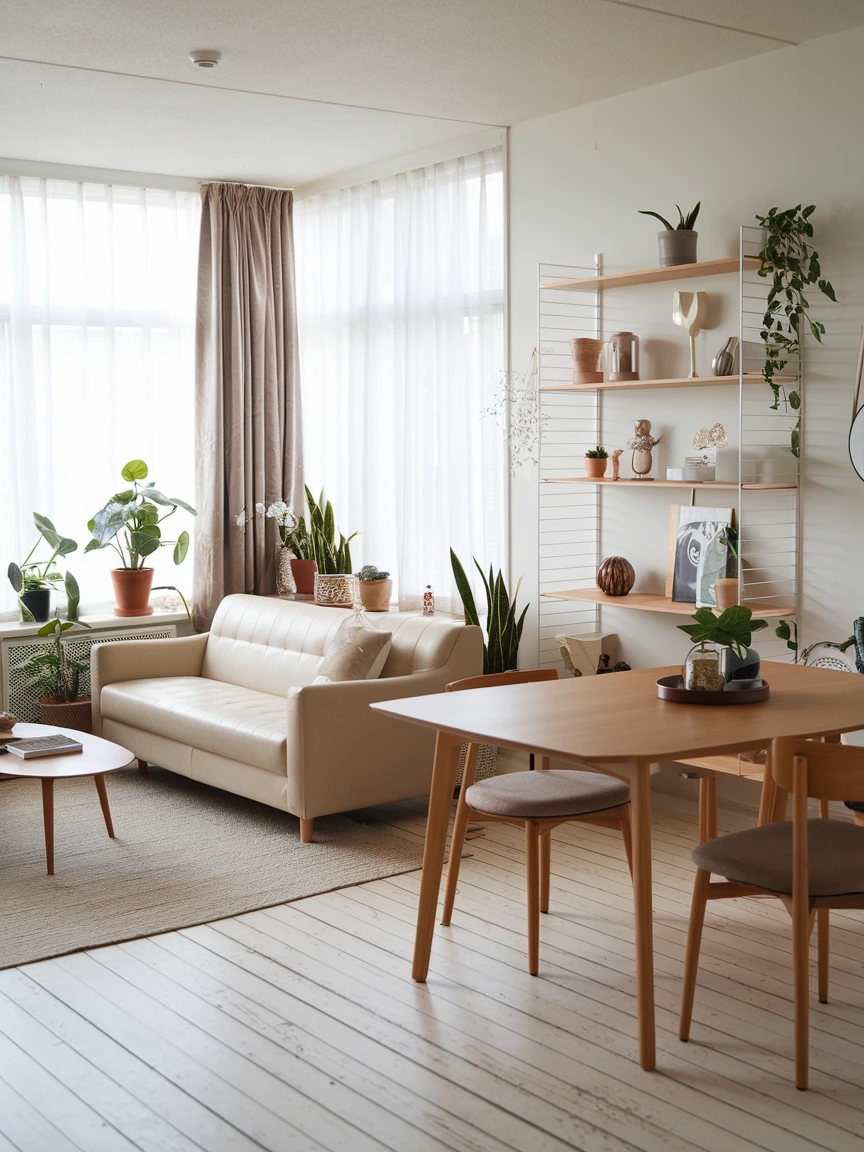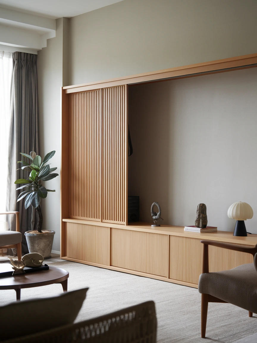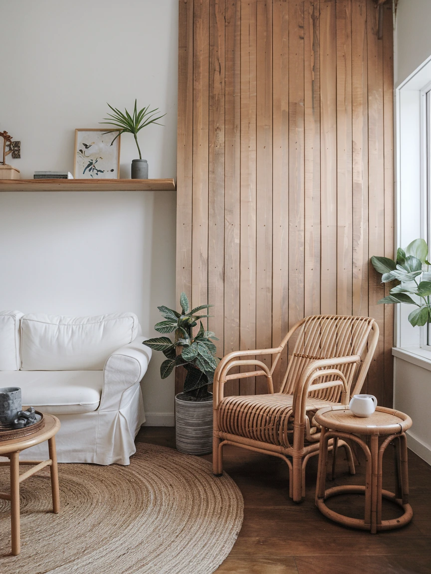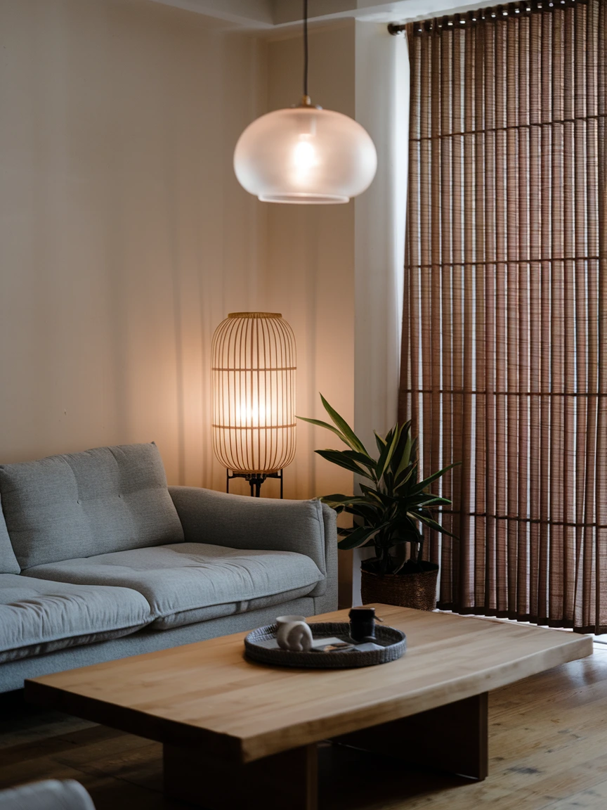 Choose furniture made of light oak or bamboo for a Scandinavian touch, or dark walnut for a more Japanese influence. Complement these with textured elements like jute rugs, handwoven baskets, or linen curtains. Even a simple ceramic planter can add a layer of authenticity to your space.