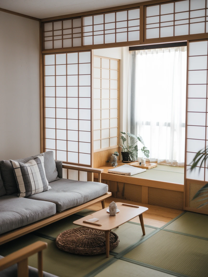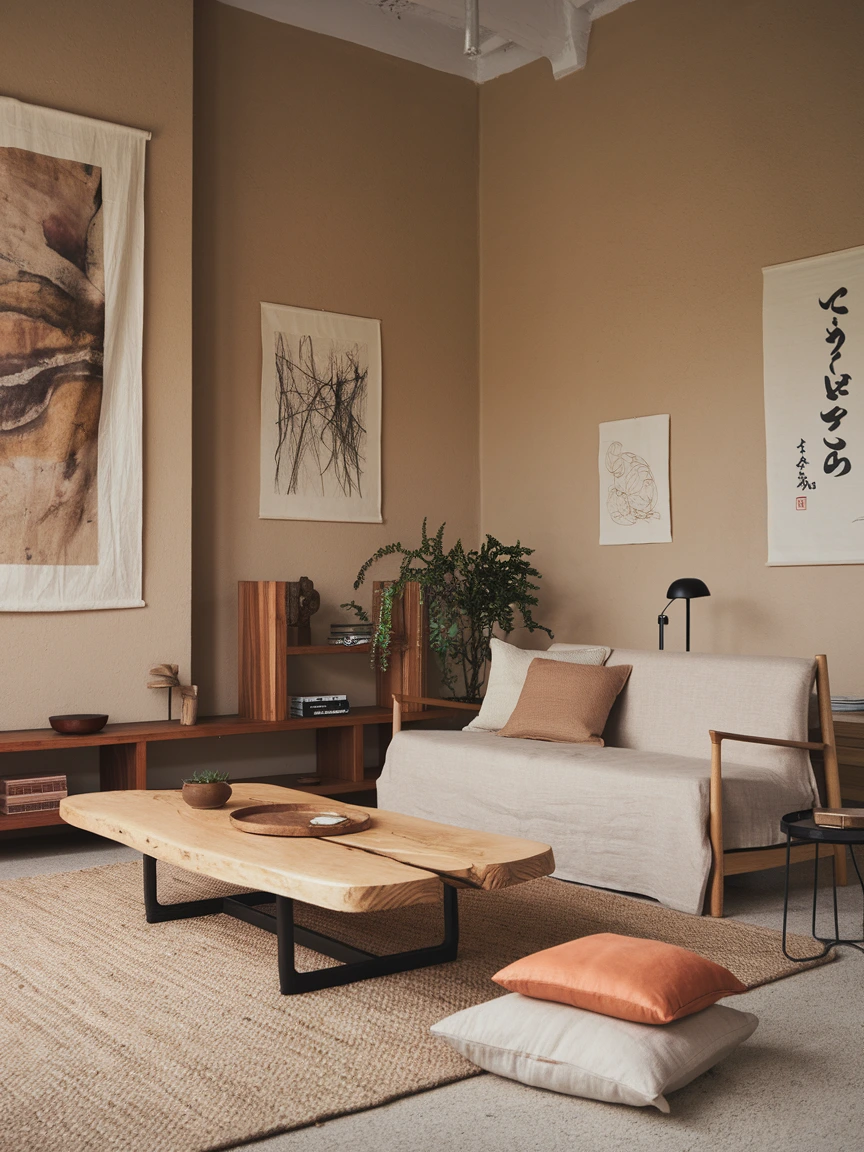A low wooden platform sofa or futon paired with floor cushions embodies this concept. To further the aesthetic, add a sleek low coffee table, keeping its surface minimal—perhaps with a single bonsai tree or a stack of neutral-colored books.