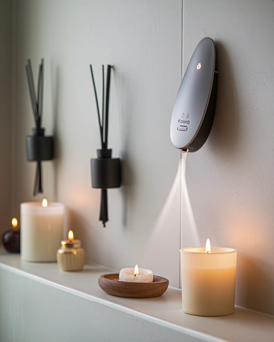 Aromatherapy & Greenery: Scented candles, essential oil diffusers, and indoor plants bring freshness to the space.