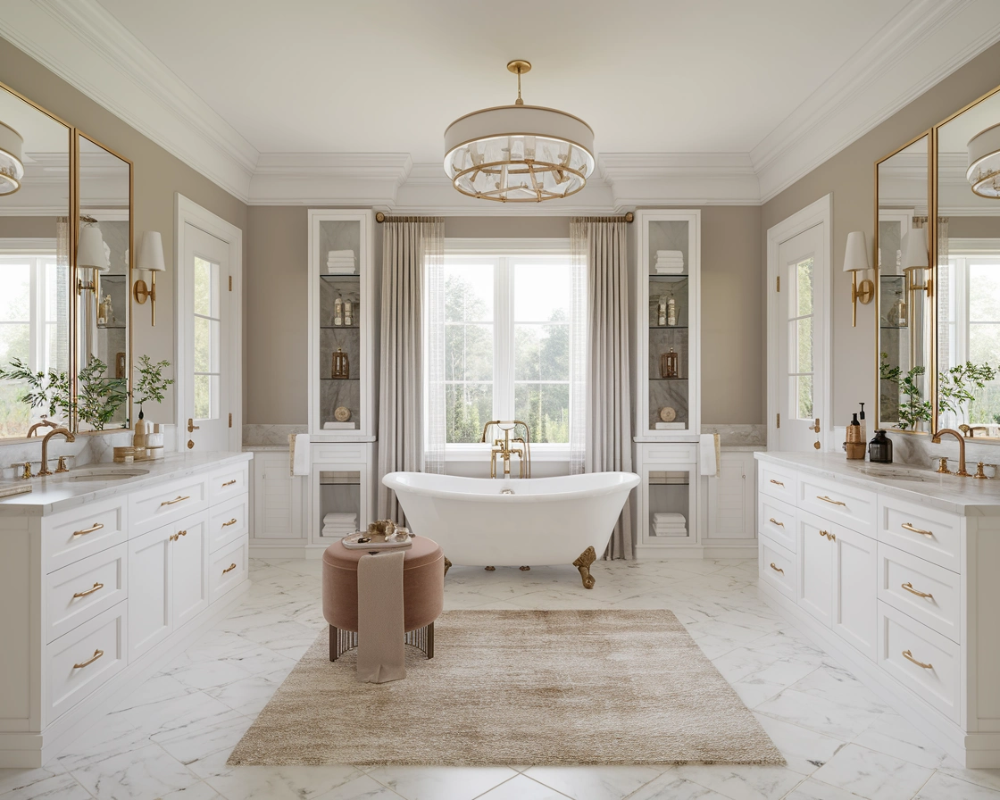 Luxury Bath Features: Think freestanding tubs, rainfall showers, and steam options for ultimate comfort.