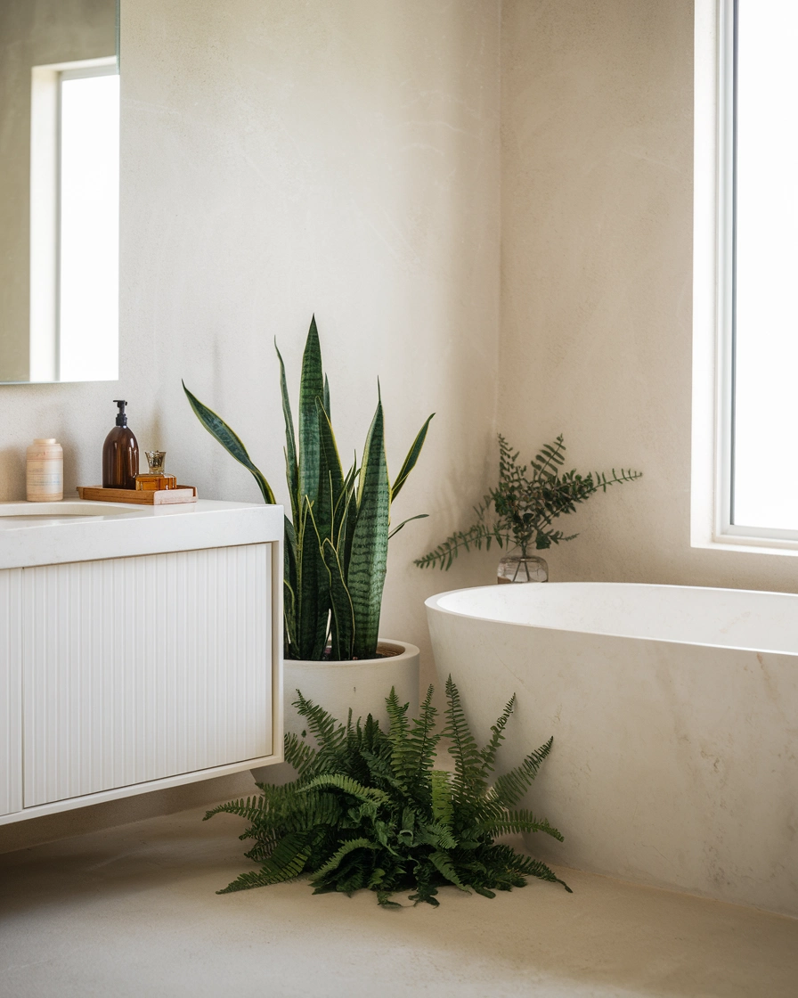 Plants are an easy way to bring life and freshness to your bathroom. Opt for low-maintenance indoor plants like snake plants or succulents that thrive in humidity. These natural additions help purify the air while adding a natural, spa-like touch to your bathroom bath designs.