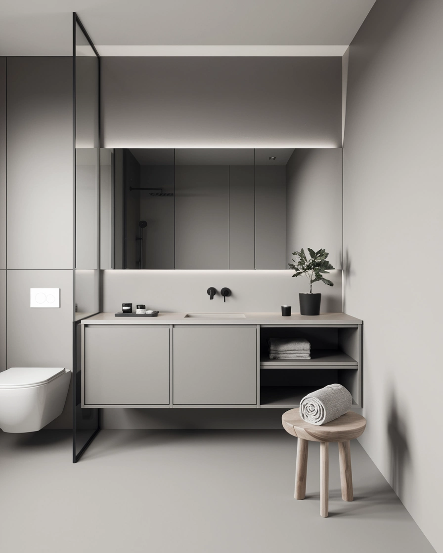 A minimalist bathroom focuses on clean lines, open space, and functional elements. By reducing clutter and sticking to essential pieces, you create a bathroom that feels spacious and peaceful. Open shelving or hidden storage ensures everything has a place, making your bathroom a haven of simplicity and order.