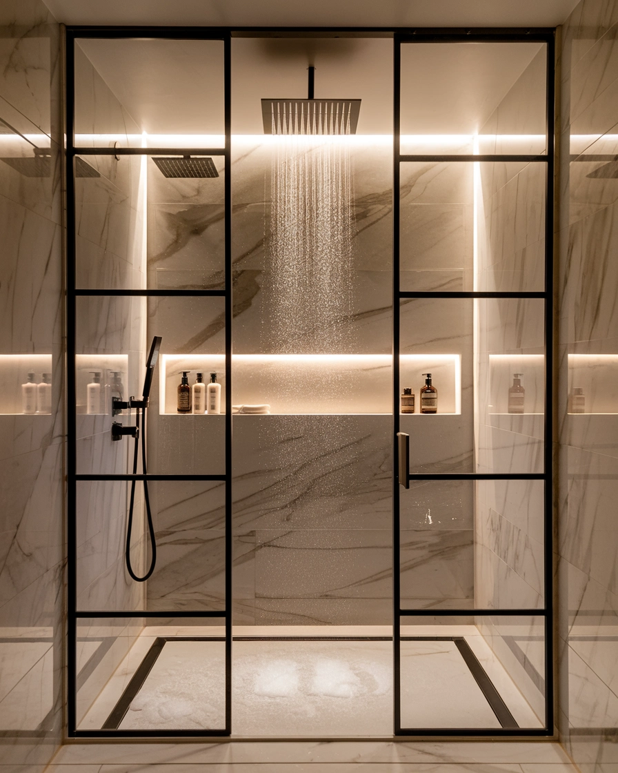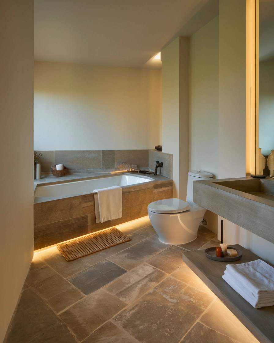 Ambient Lighting: Soft, dimmable lights or warm LEDs add to the spa-like ambiance.