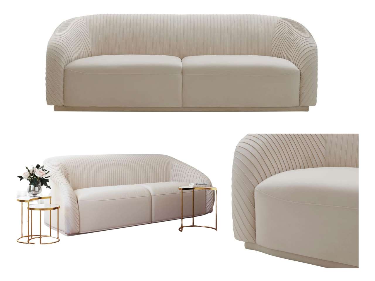 This beauty strikes a balance between traditional elegance and modern flair. Pleated velvet, curved arms, and soft lines make it ideal for cozy conversations and late-night lounging.