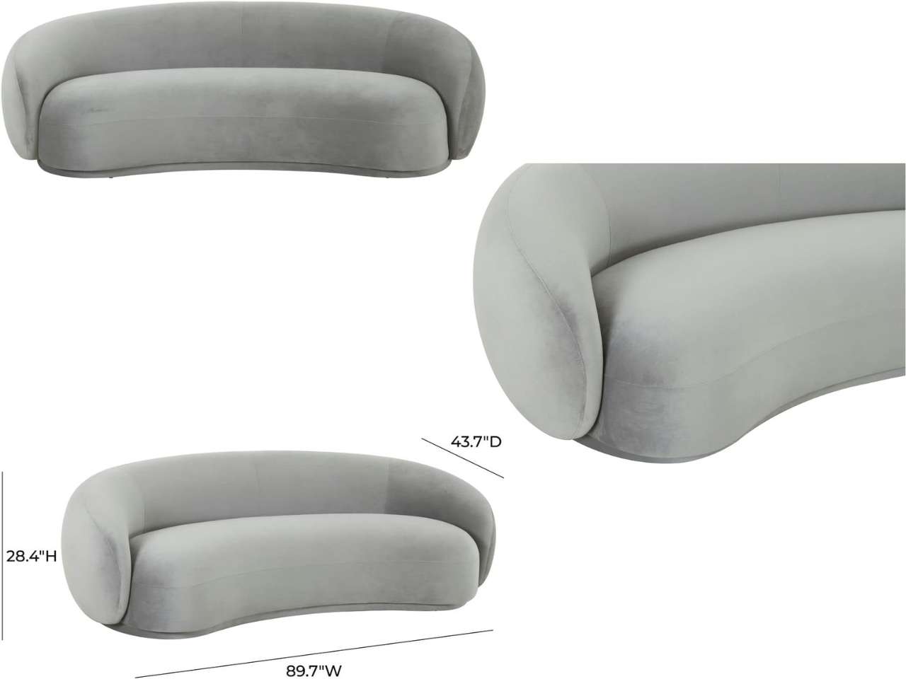 TOV Furniture! With its curved silhouette, plush upholstery and modern design, the Kendall sofa will elevate any space with a luxe, contemporary feel. Generous fiber-wrapped foam padding and a sturdy pine frame offer long-lasting comfort and support. Available in multiple colors.