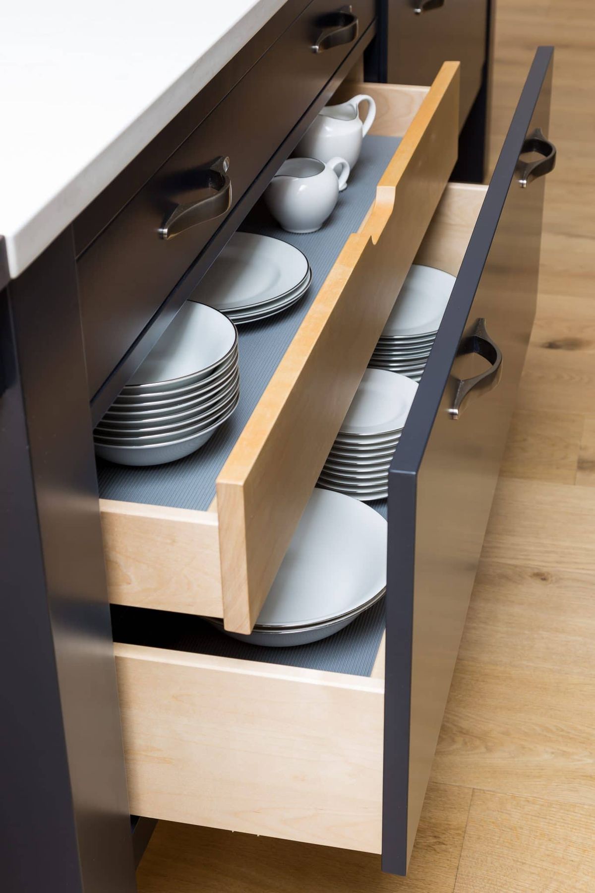 Pro Tip: Install drawer dividers and baskets inside cabinets to organize smaller items like utensils, lids, and condiments. Labeling jars and containers can also help keep everything in its place.