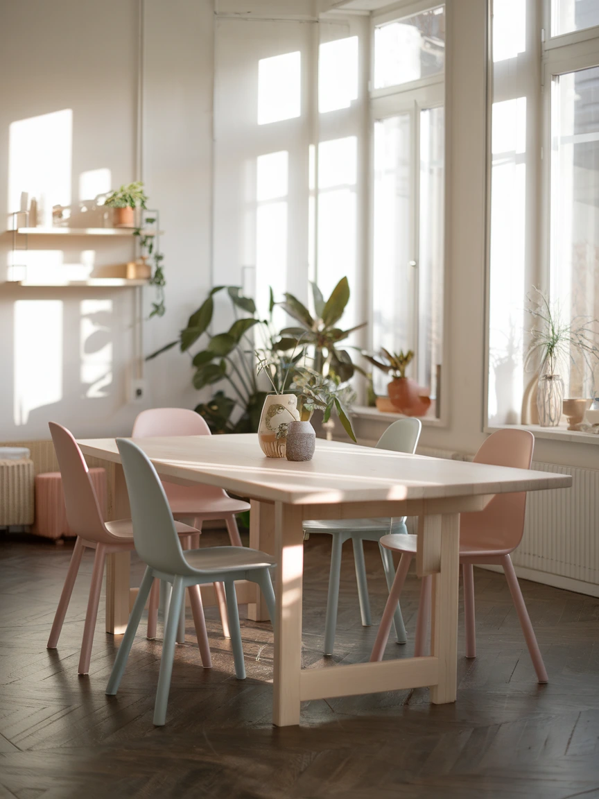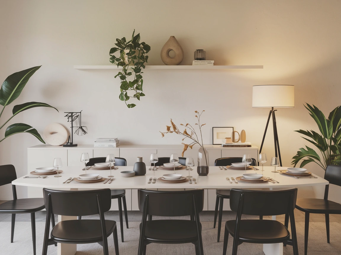 Scandinavian design is all about clean lines, neutral colors, and practical furniture. A light wood dining table paired with pastel or white dining chairs creates an inviting and cozy ambiance. To add depth, consider a textured rug under the table and minimal dining room wall decor such as framed black-and-white prints. Finish the look with a simple pendant light fixture for a soft glow, making this style perfect for modern homes.