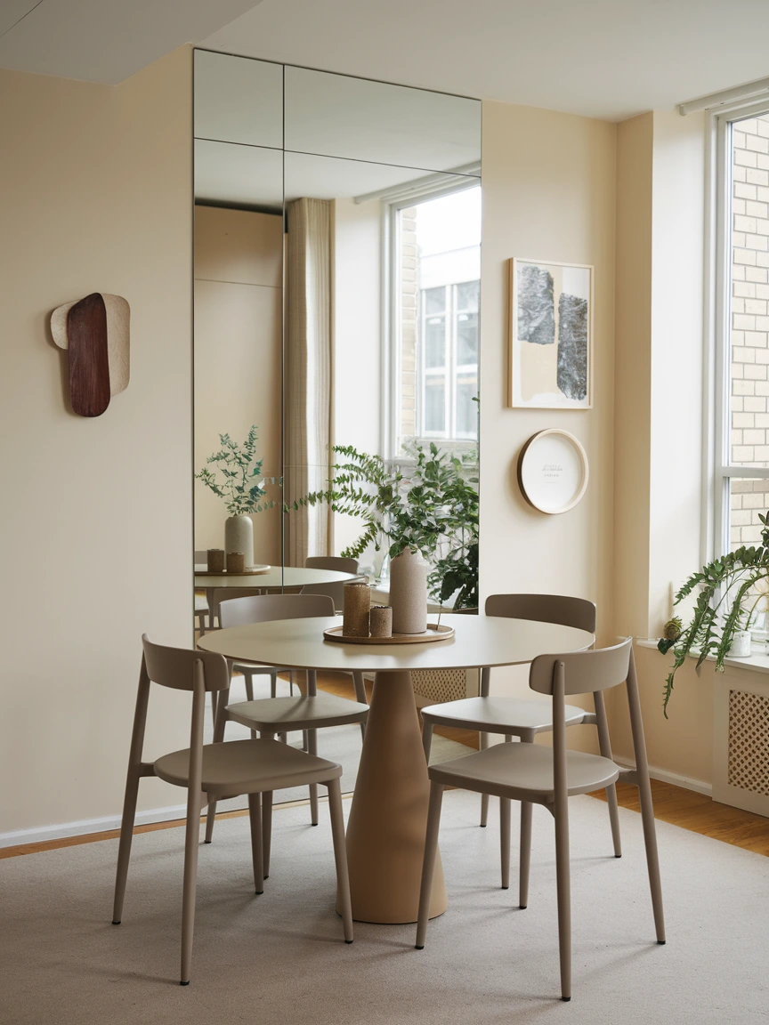 Small dining spaces can feel inviting and functional with the right design. Opt for a round dining table to save space, and choose slim-profile chairs. Add mirrors to reflect light and create an illusion of more space. Light colors and minimal decor help keep the room feeling open and cozy.