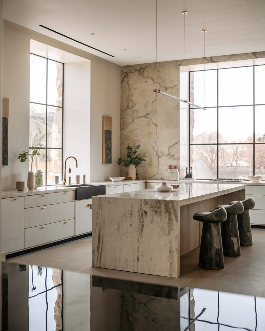 7. Leathered Marble & Quartz (Kitchen & Dining)
