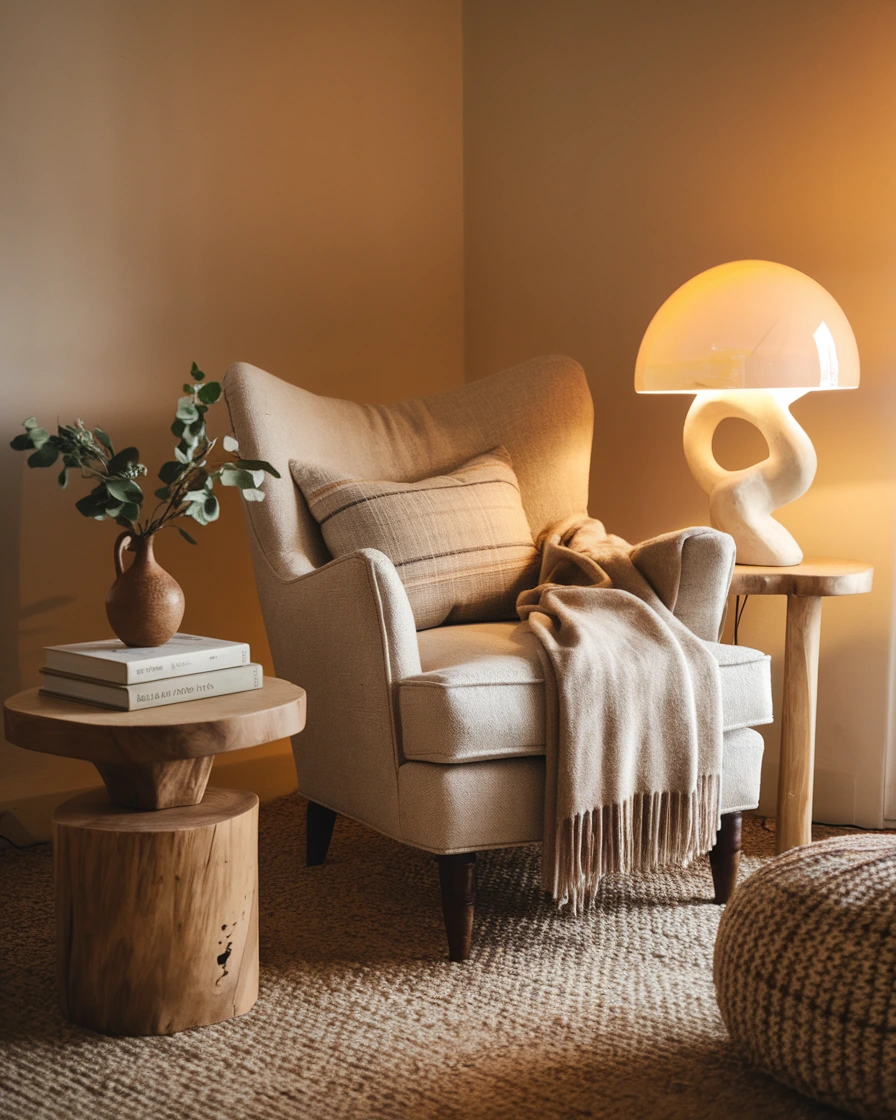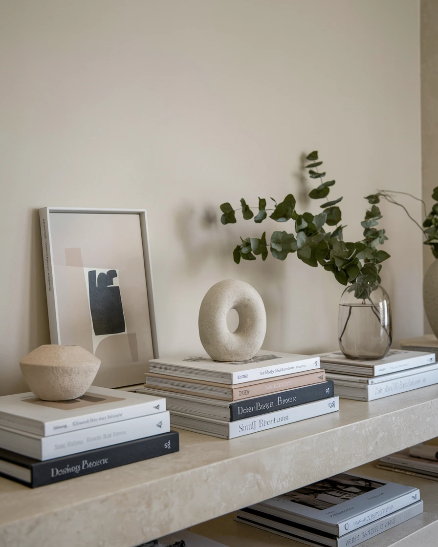 5. Add natural elements - a stone bowl, wooden tray, or linen throw.