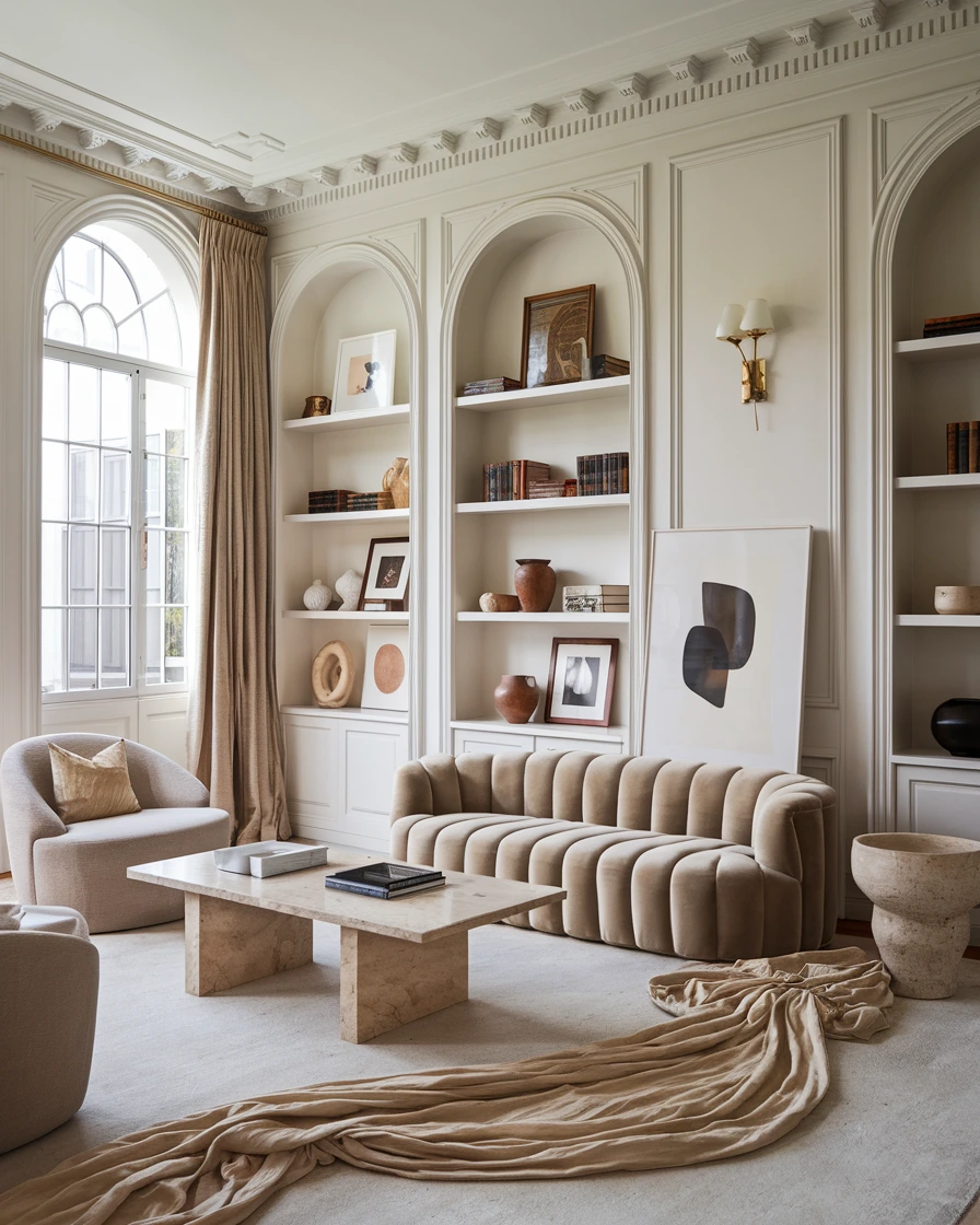Today's neutral palette in quiet luxury design is sophisticated and layered.