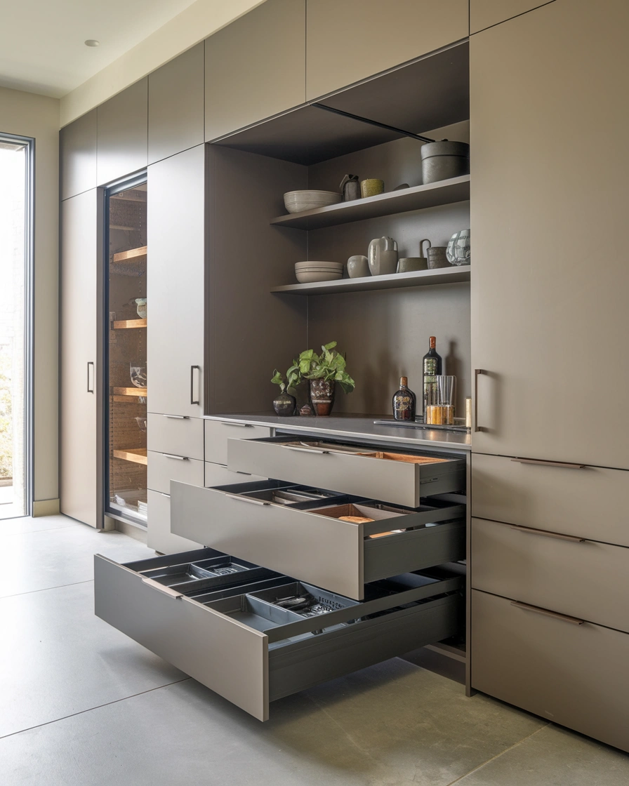 Traditional deep cabinets make it hard to reach items in the back, leading to mess and frustration. Instead, consider pull-out drawers and trays.