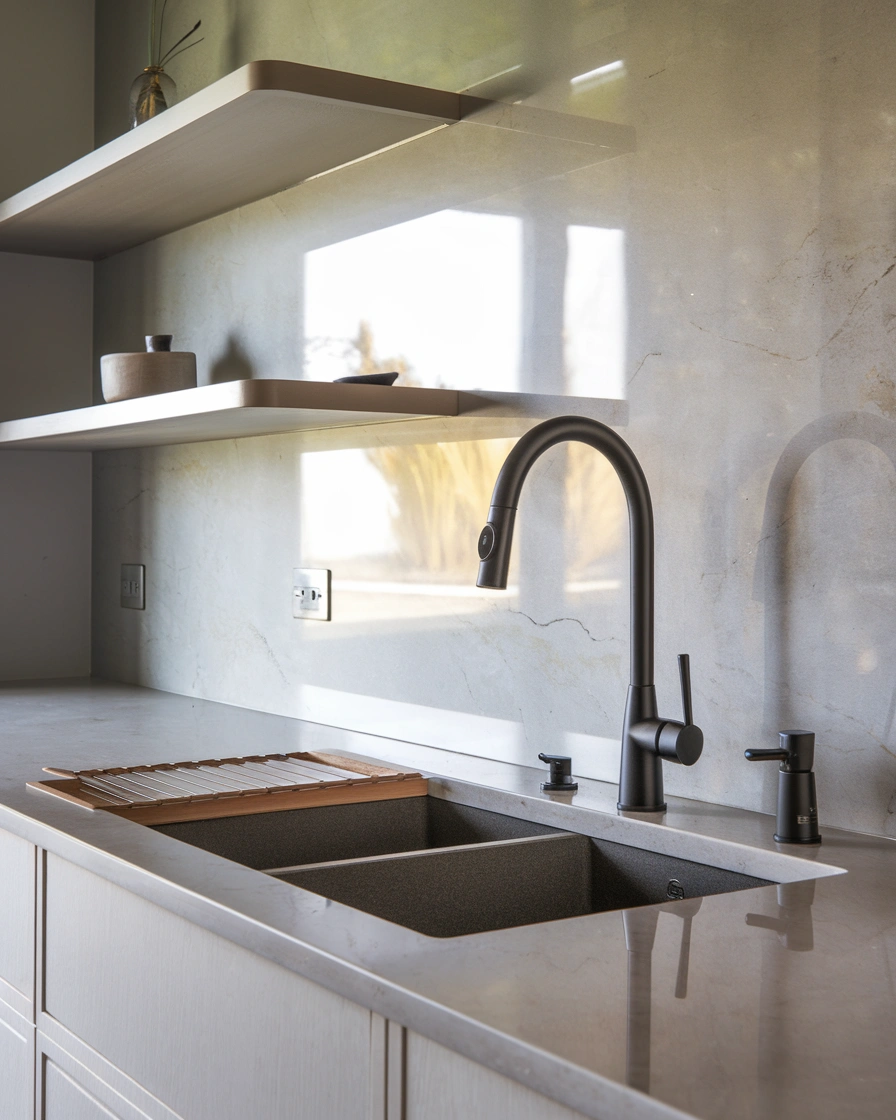 Undermount sinks: No exposed edges = less grime buildup around the sink.
