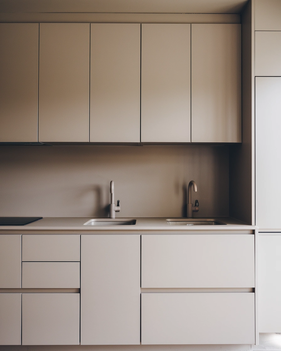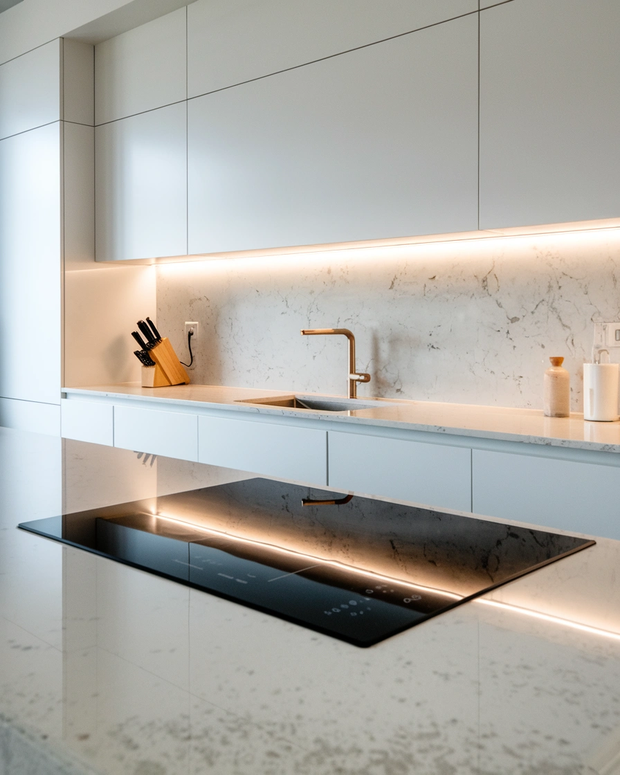 Traditional cabinet handles collect dust, grease, and grime over time. Opting for push-to-open or groove-style handleless cabinets makes cleaning much easier.